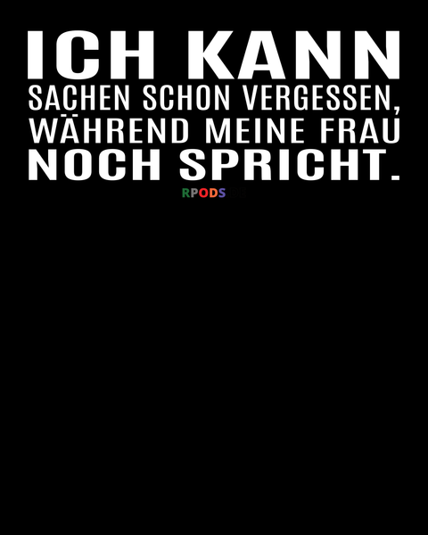 Fun Design mit dem Spruch: "Ich kann Sachen schon vergessen, während meine Frau noch spricht." Design für dunkle Shirts, Tops oder andere Artikel.